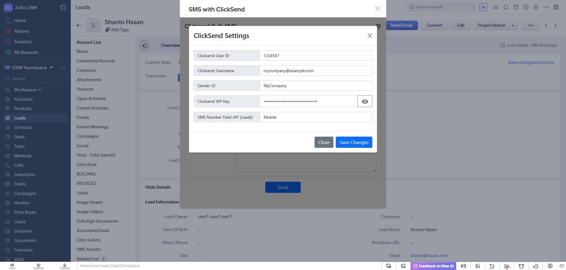 ClickSend SMS For Zoho CRM